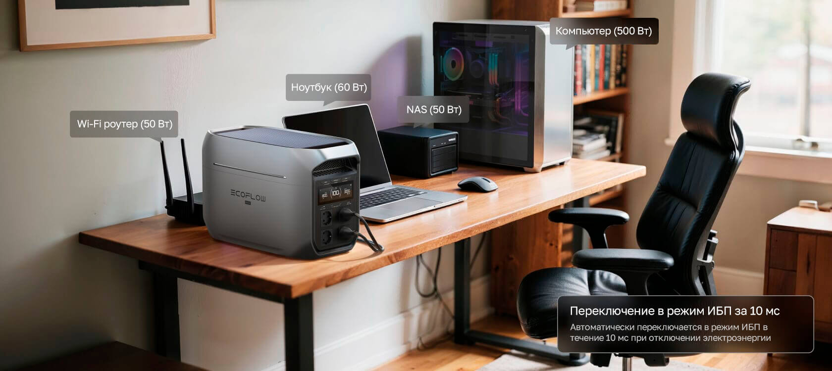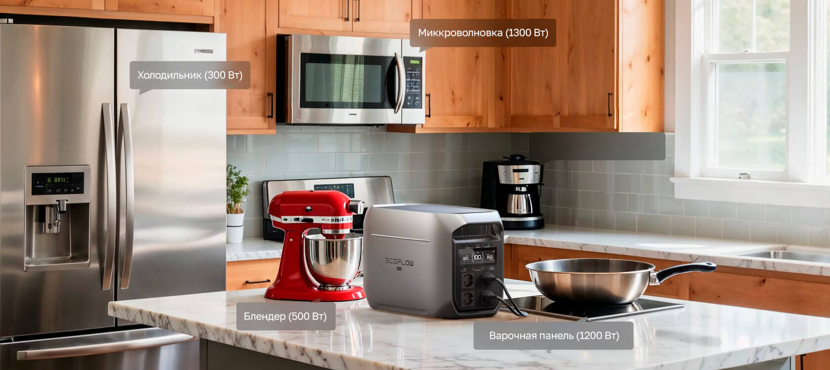 DELTA 3 Max Plus обеспечивает мощную выходную мощность 3000 Вт — достаточно для одновременной работы микроволновой печи, чайника, холодильника и блендера без каких либо перебоев.